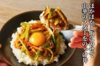 たけのこ水煮(中国製造)、豚肉(日本)、ピーマン(日本)、植物油、椎茸、パプリカ、オイスターソース、セロリ、鶏卵、醤油、でん粉、葱、清酒、紹興酒、ケチャップ、生姜、にんにく、砂糖、ガラスープの素、香辣醤、胡椒、(一部に小麦・卵・ごま・大豆・鶏肉・豚肉を含む)